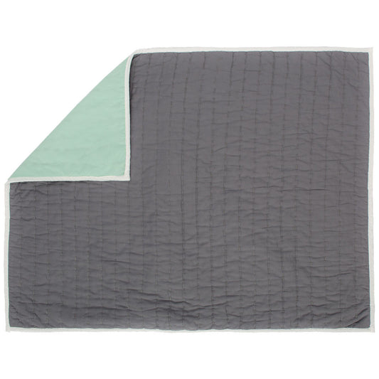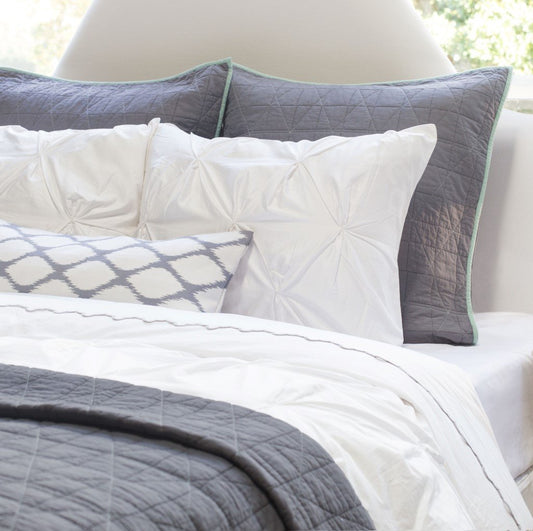 Reversible Pick-Stitch Charcoal Grey Quilt Sham Pair