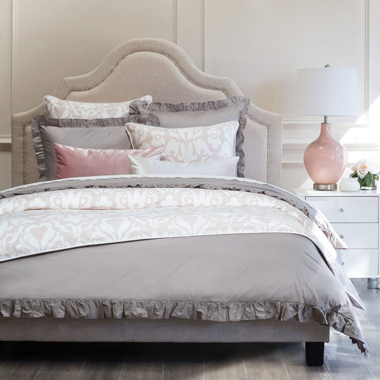 Gray Scalloped Embroidered Sheet Set (Fitted, Flat, & Pillow Cases)