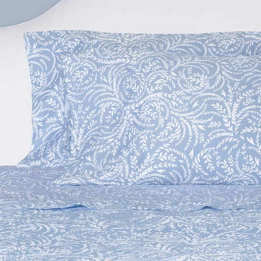 Cornflower Blue Wavelet Embroidered Flat Sheet