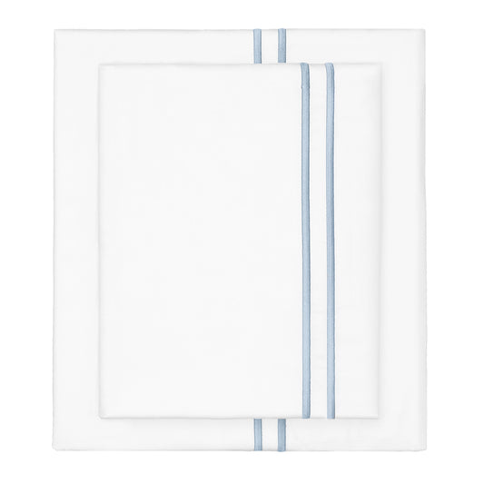 French Blue Lines Embroidered Sheet Set (Fitted, Flat, & Pillow Cases)
