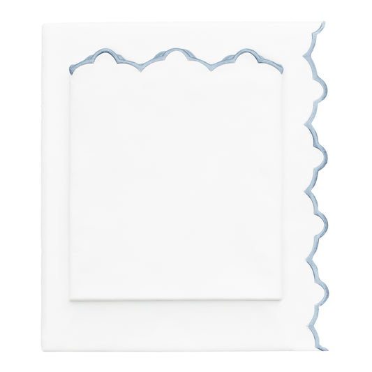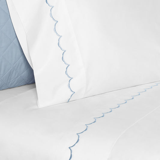 French Blue Scalloped Embroidered Sheet Set (Fitted, Flat, & Pillow Cases)