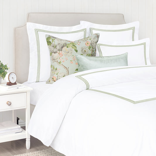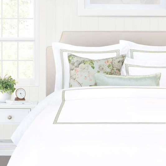 Octavia Eucalyptus Embroidered Percale Duvet Cover
