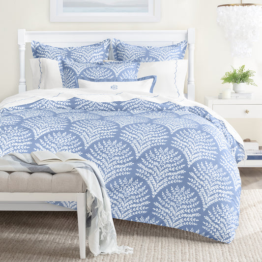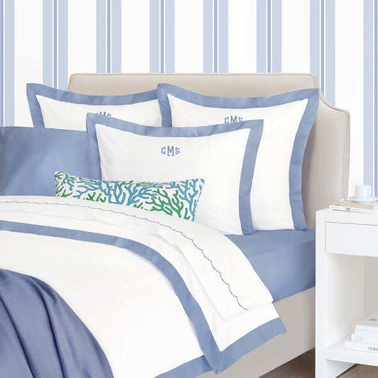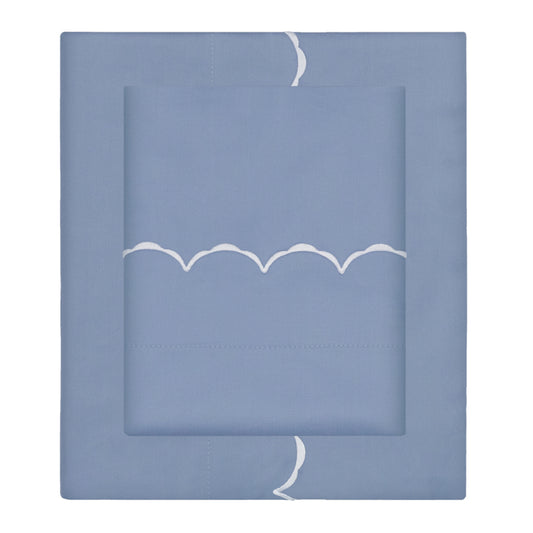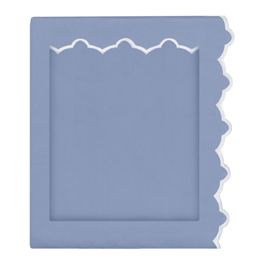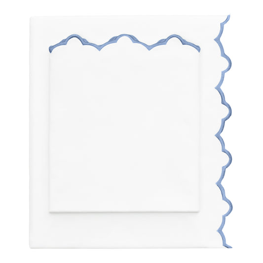 Coastal Blue Scalloped Embroidered Flat Sheet