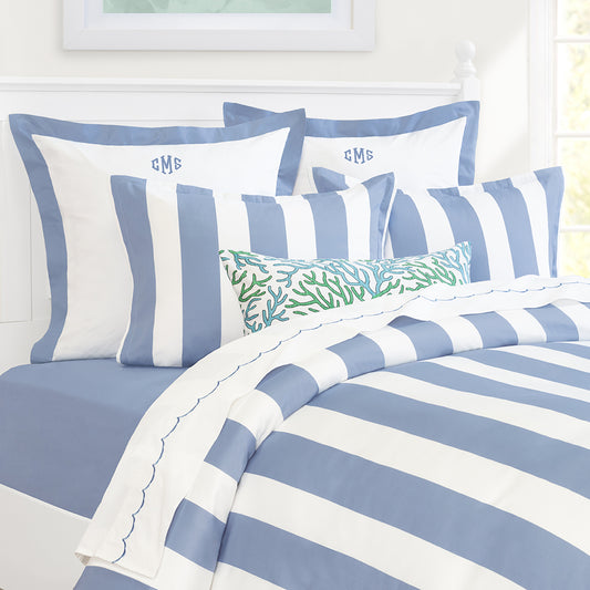 Coastal Blue Lines Embroidered Sheet Set (Fitted, Flat, & Pillow Cases)