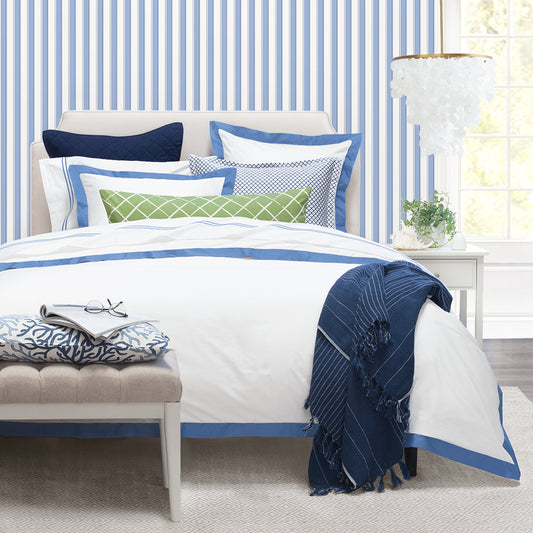Coastal Blue 400 Thread Count Embroidered Lines Flat Sheet