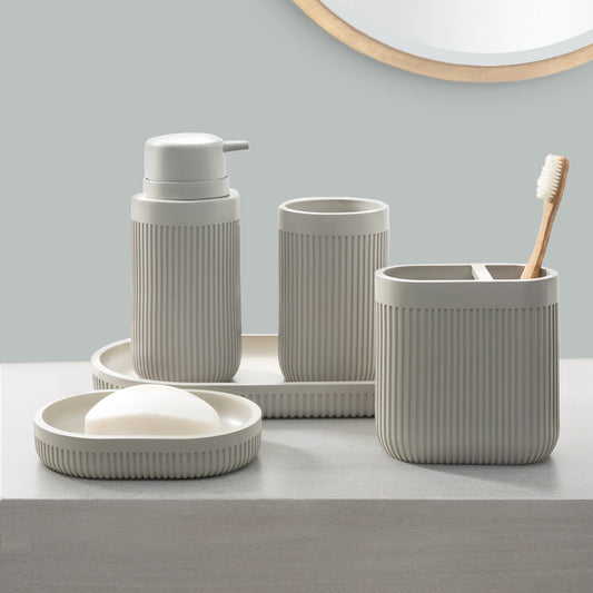 Modern Ribbed Taupe Bath Accessories, Toothbrush Holder