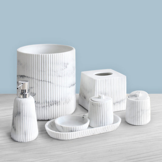Ribbed Grey Marble Bath Accessories, Tissue Box Cover
