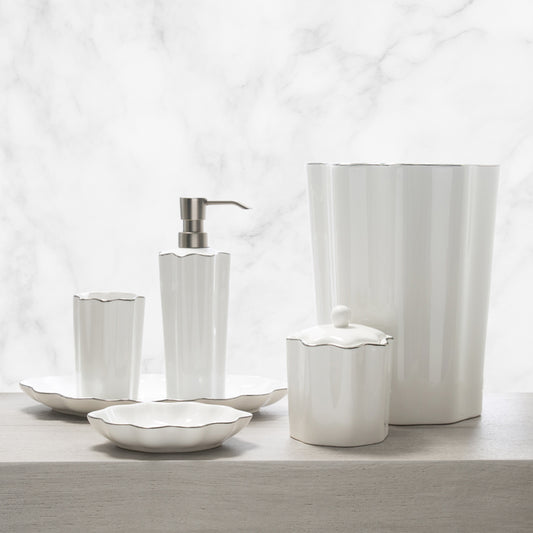 Silver Scalloped Porcelain Bath Accessories, Waste Basket