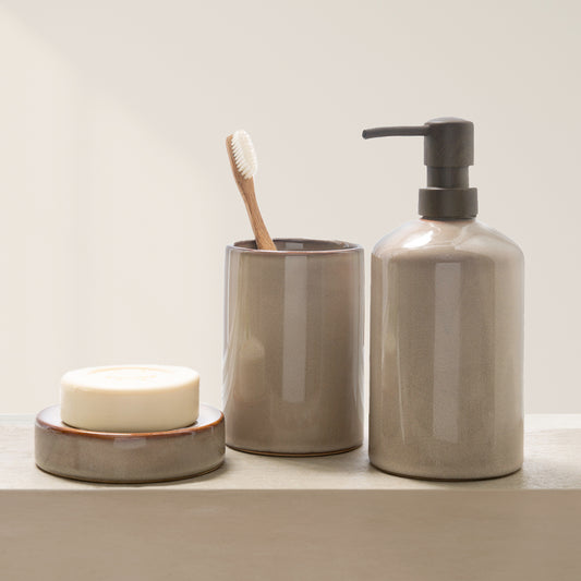 Stoneware Taupe Ceramic Bath Accessories, Soap/Lotion Pump