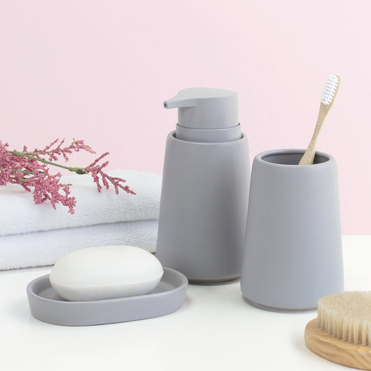 Modern Matte Light Grey Ceramic Bath Accessories, Soap/Lotion Pump