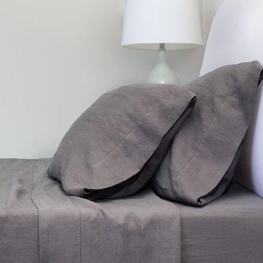 Grey Belgian Flax Linen Sheet Set (Fitted, Flat, & Pillow Cases)