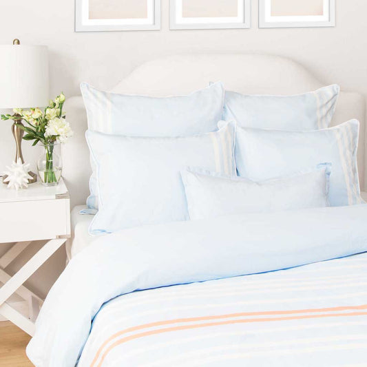Light Blue Scalloped Embroidered Sheet Set (Fitted, Flat, & Pillow Cases)