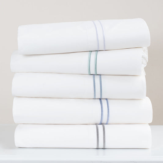 White Lines Embroidered Sheet Set (Fitted, Flat, & Pillow Cases)