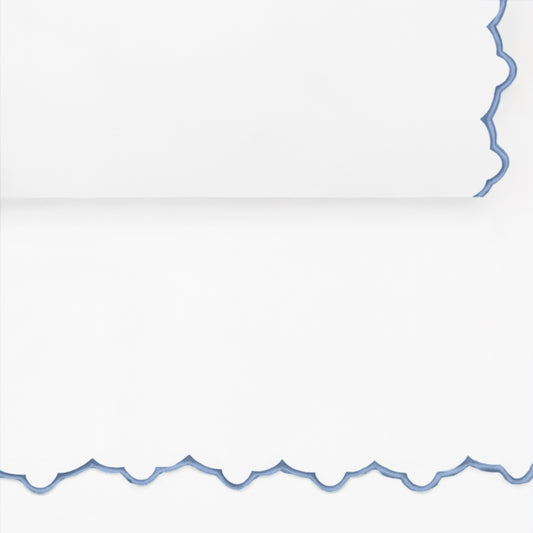 Cornflower Blue Scalloped Embroidered Sheet Set (Fitted, Flat, & Pillow Cases)