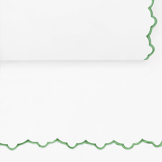 Porcelain Green Scalloped Embroidered Sheet Set (Fitted, Flat, & Pillow Cases)