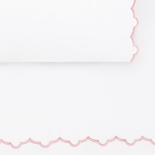 Pink Scalloped Embroidered Sheet Set (Fitted, Flat, & Pillow Cases)