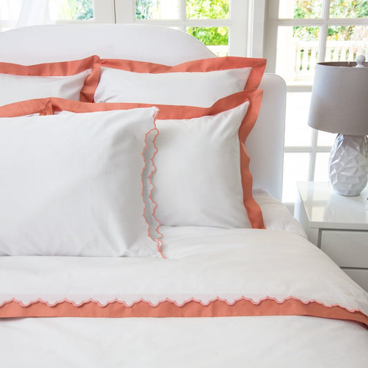Coral Scalloped Embroidered Sheet Set (Fitted, Flat, & Pillow Cases)
