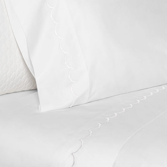 White Scalloped Embroidered Sheet Set (Fitted, Flat, & Pillow Cases)