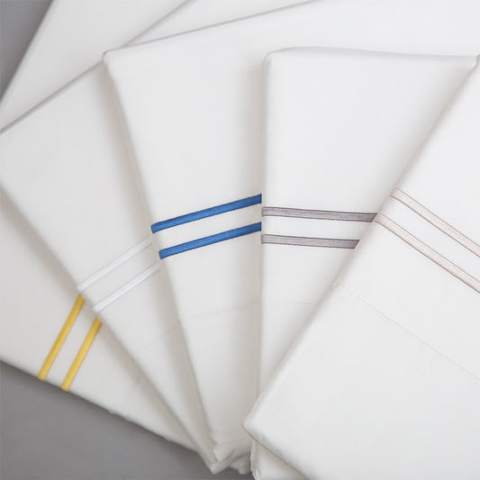 Marigold Yellow Lines Embroidered Sheet Set (Fitted, Flat, & Pillow Cases)