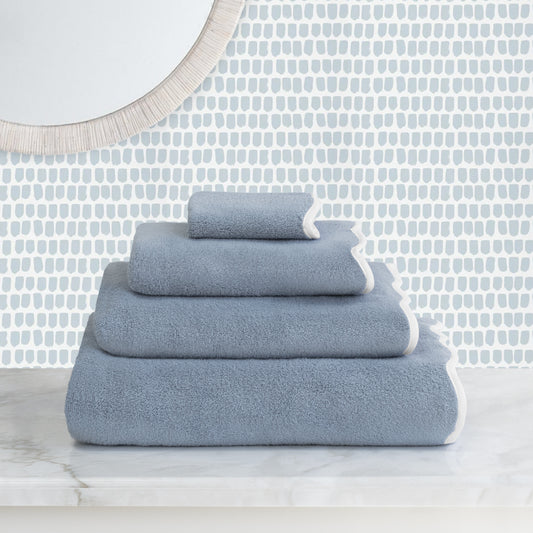 Blue Scalloped Plush White Towel Essentials Bundle (2 Wash + 2 Hand + 2 Bath Towels)