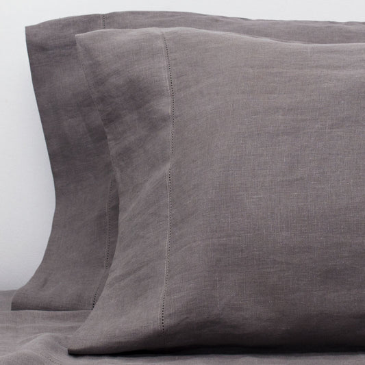 Reversible Pick-Stitch Charcoal Grey Quilt Sham Pair