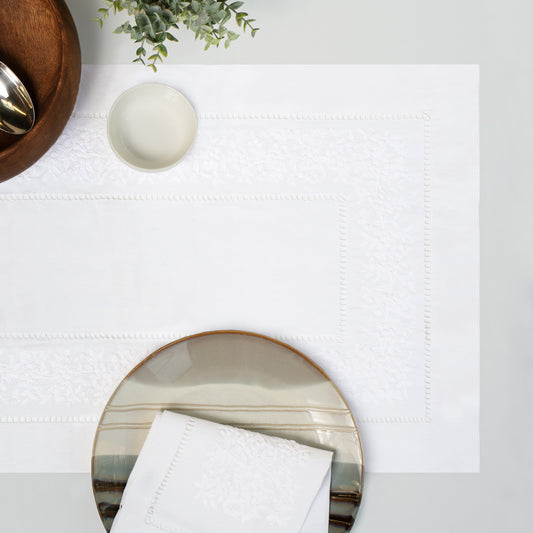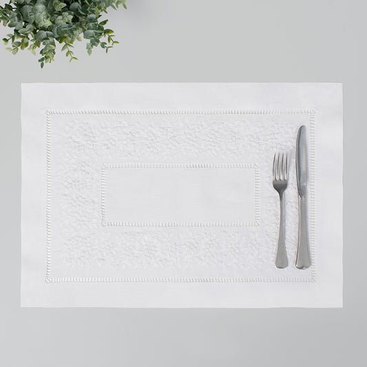 The Embroidered Botanical Hemstitch Linen Placemat (Set of 4)