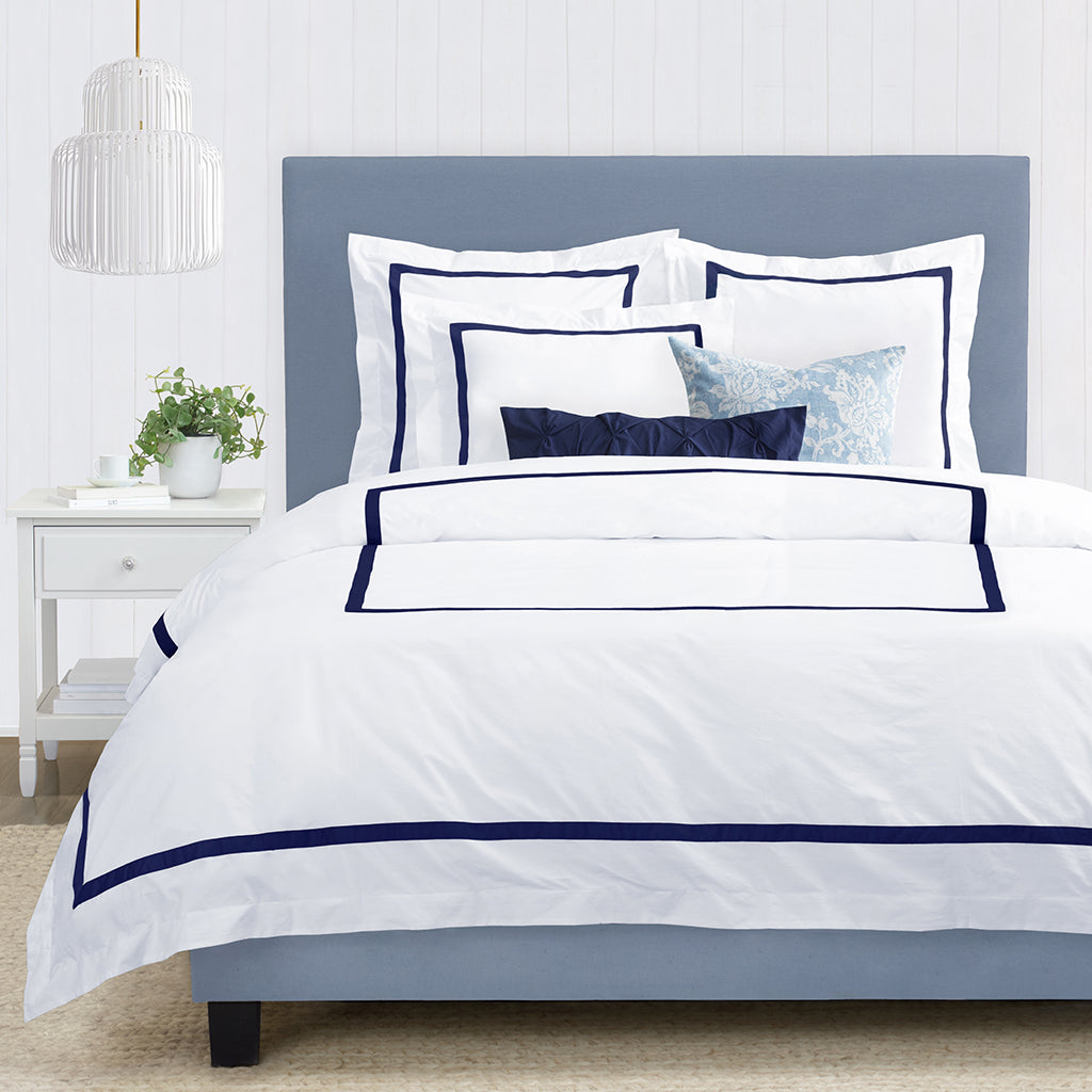 Bright whites, crisp percale and premium Egyptian extra-long staple cotton woven in Italy. Your dream bed awaits with our crisp and cool percale duvet cover. With its timeless framed appliqué, the Bella duvet cover features Italian craftsmanship at its finest.