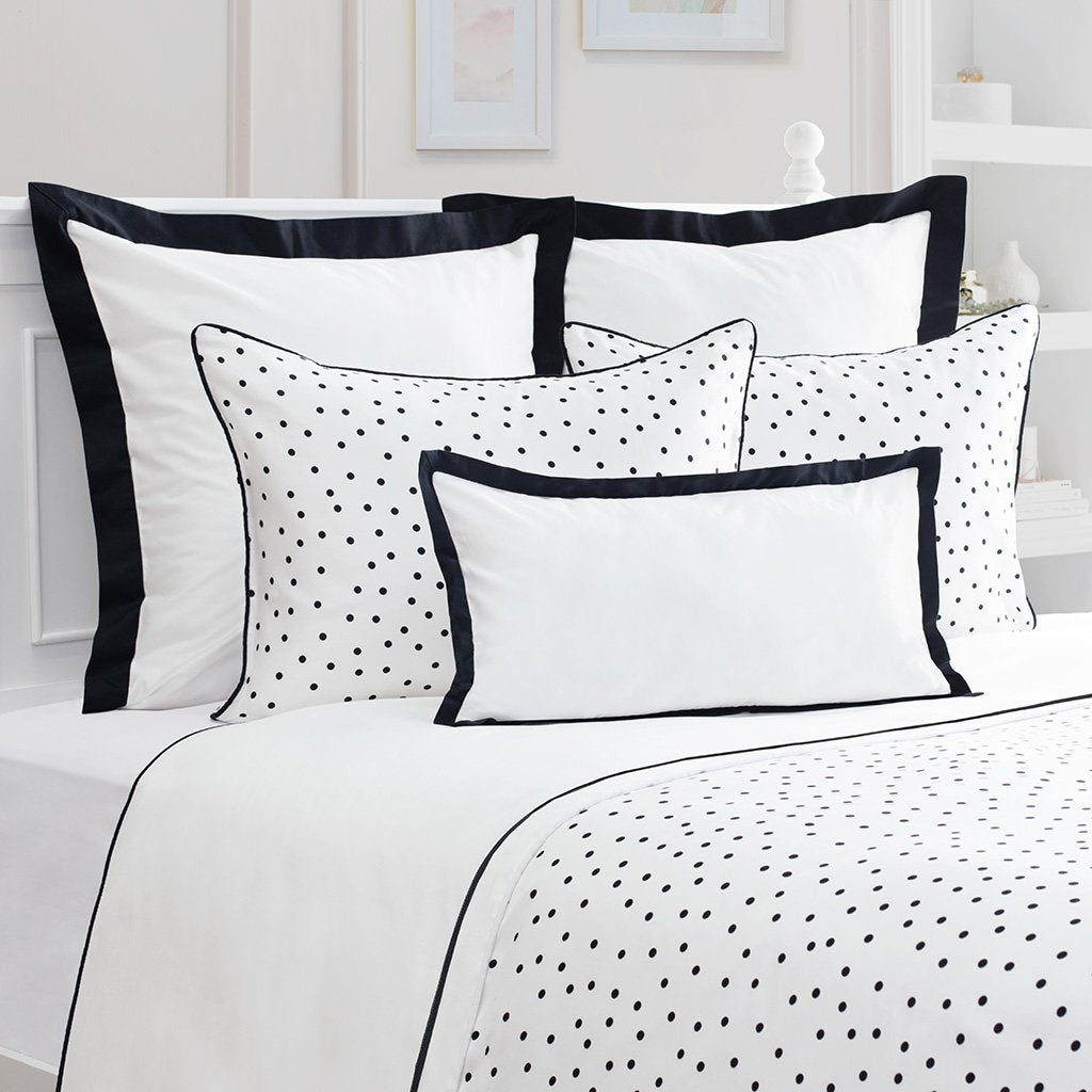 Make a statement with our fresh take on classic polka dots. Our Harper polka dot bedding, complete with whimsical black dots, adds playful sophistication to any space. It"„¢s also made from 100% long-staple cotton and woven in a luxurious 300-thread-count, so it looks chic and feels oh-so-soft. Our Harper Black and White bedding pairs beautifully with our luxury sheets and chic throw pillows.