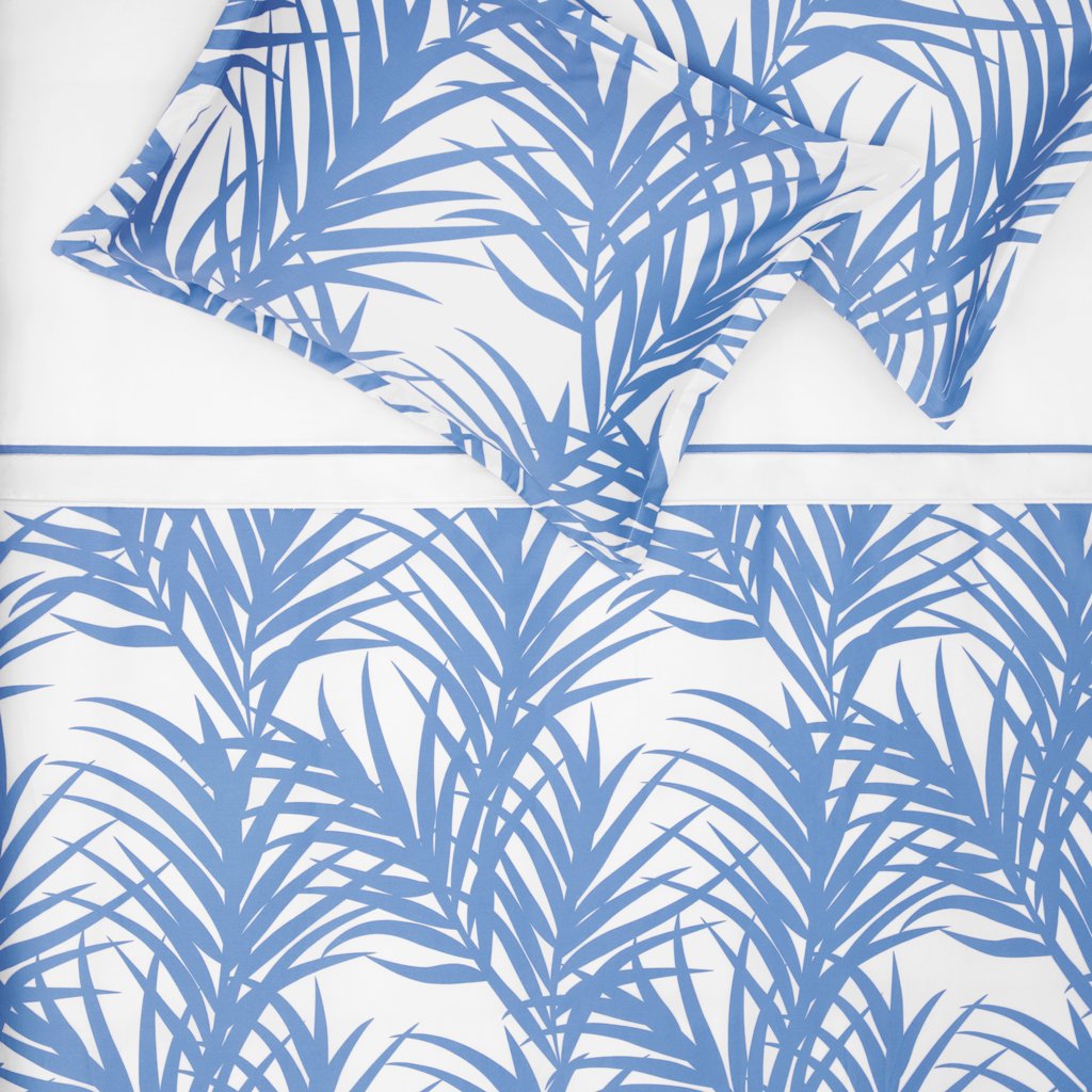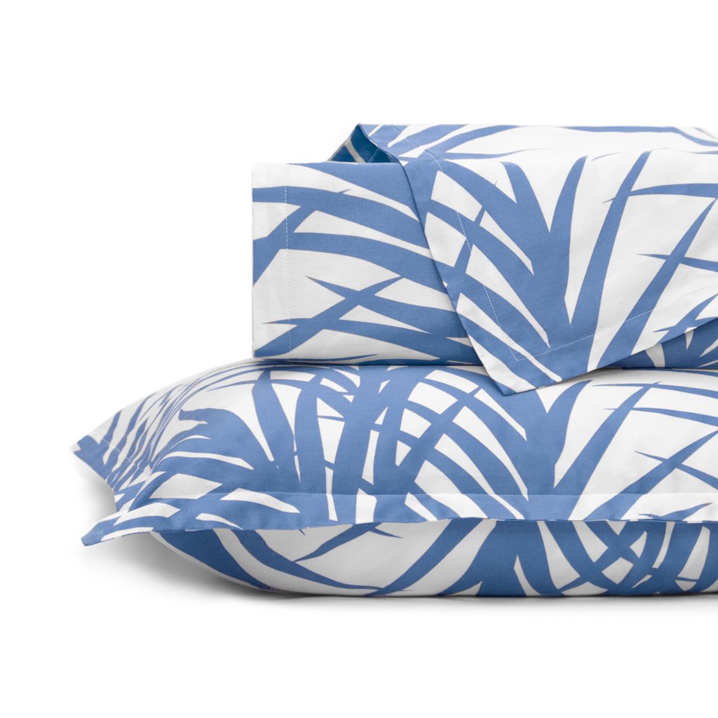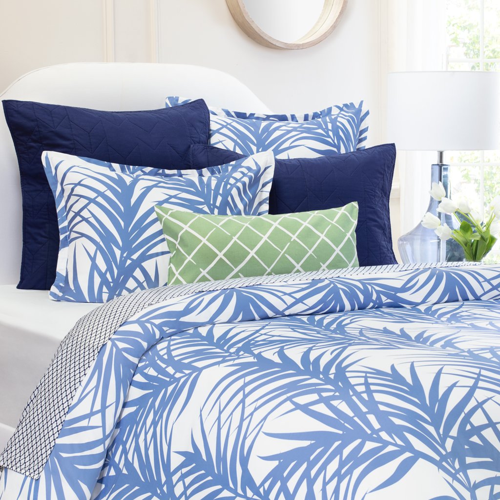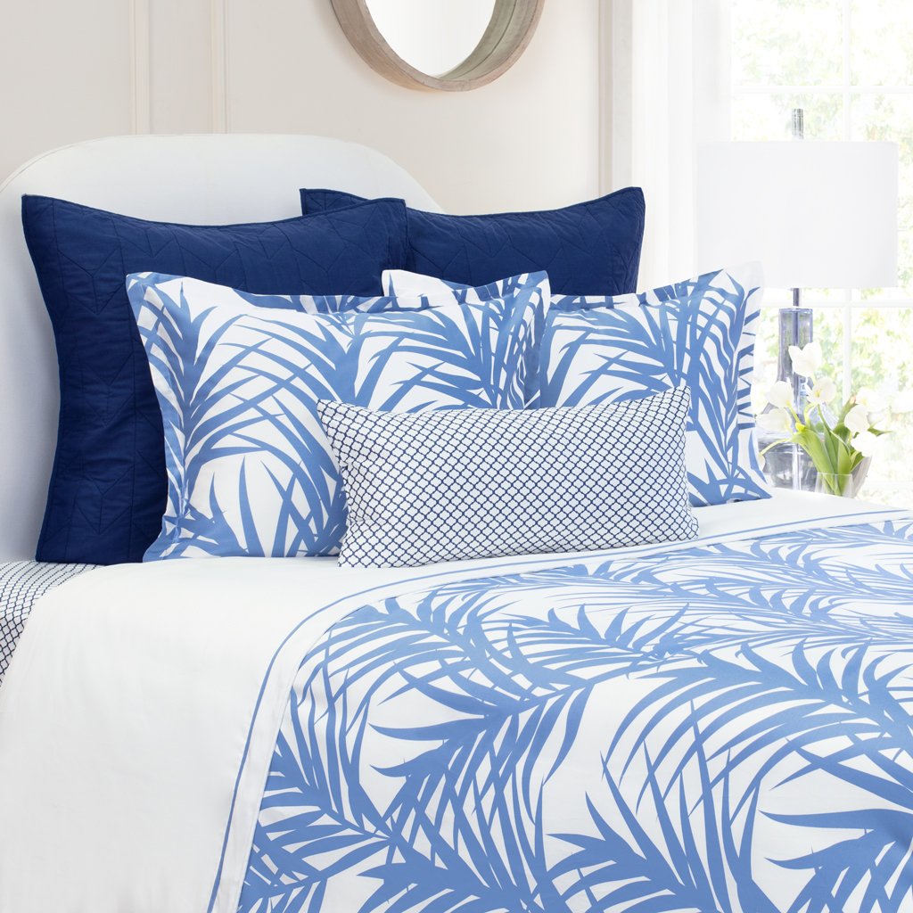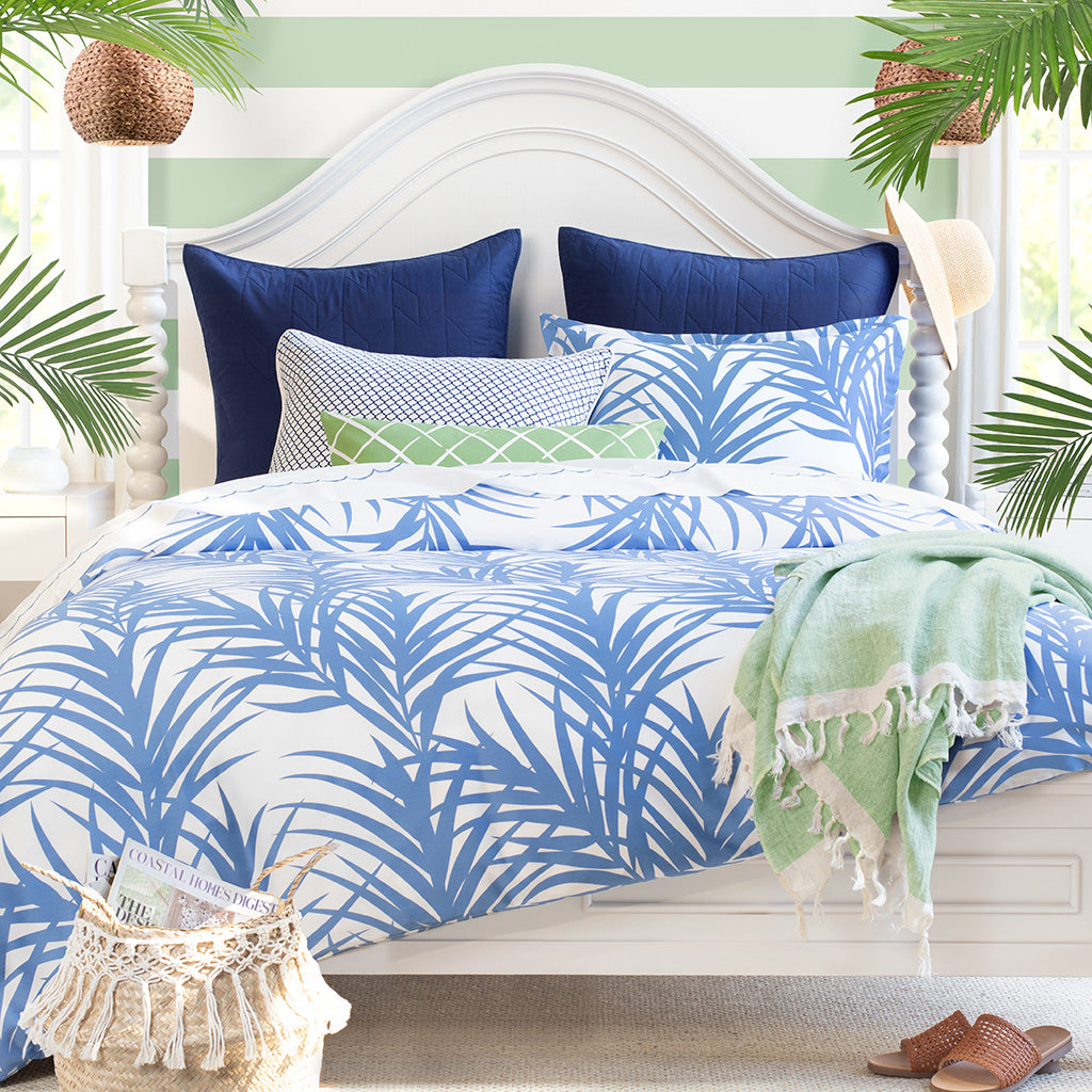 Indulge in the breezy ease of island living with our Laguna Blue bedding. This palm-inspired print is as cool as the ocean breeze and will perfect your coastal bedroom.