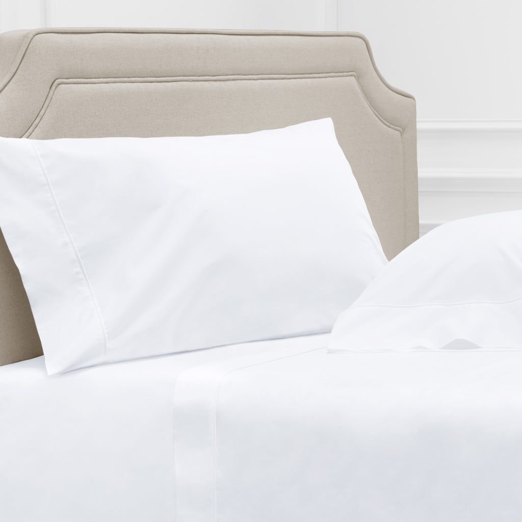 Experience luxury at its finest with crisp and cool percale sheets, crafted in Italy from 100% Egyptian extra-long staple cotton. Woven in a 400 thread-count, our bright white percale sheet is lightweight, yet durable, and only gets softer with time. Your luxury bed awaits.