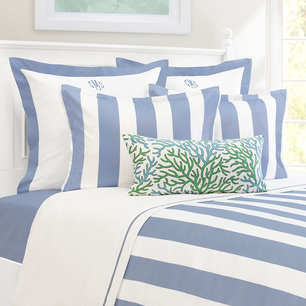 Indulge in the breezy ease of island living with our Harbor Coastal Blue bedding. Our preppy striped bedding is as cool as the ocean breeze and will perfect your coastal bedroom.