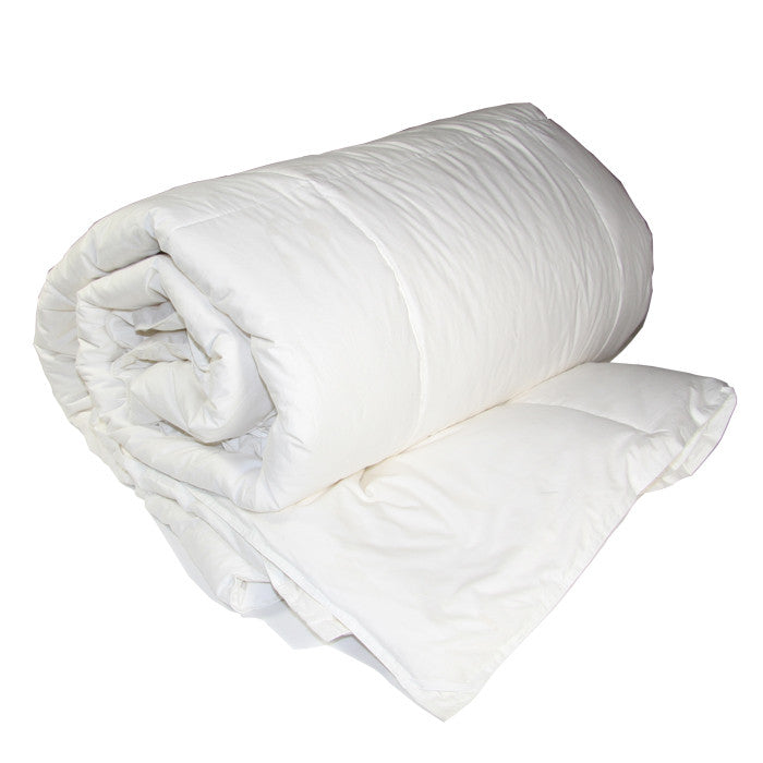 Crane & Canopy's Cotton Filled White Comforter features naturally lofted cotton fill that provides the same warming properties of natural goose down. While most down alternative comforters are polyester-based, our white comforter is made 100% cotton. Try a cotton white comforter and sleep in an all natural bed.