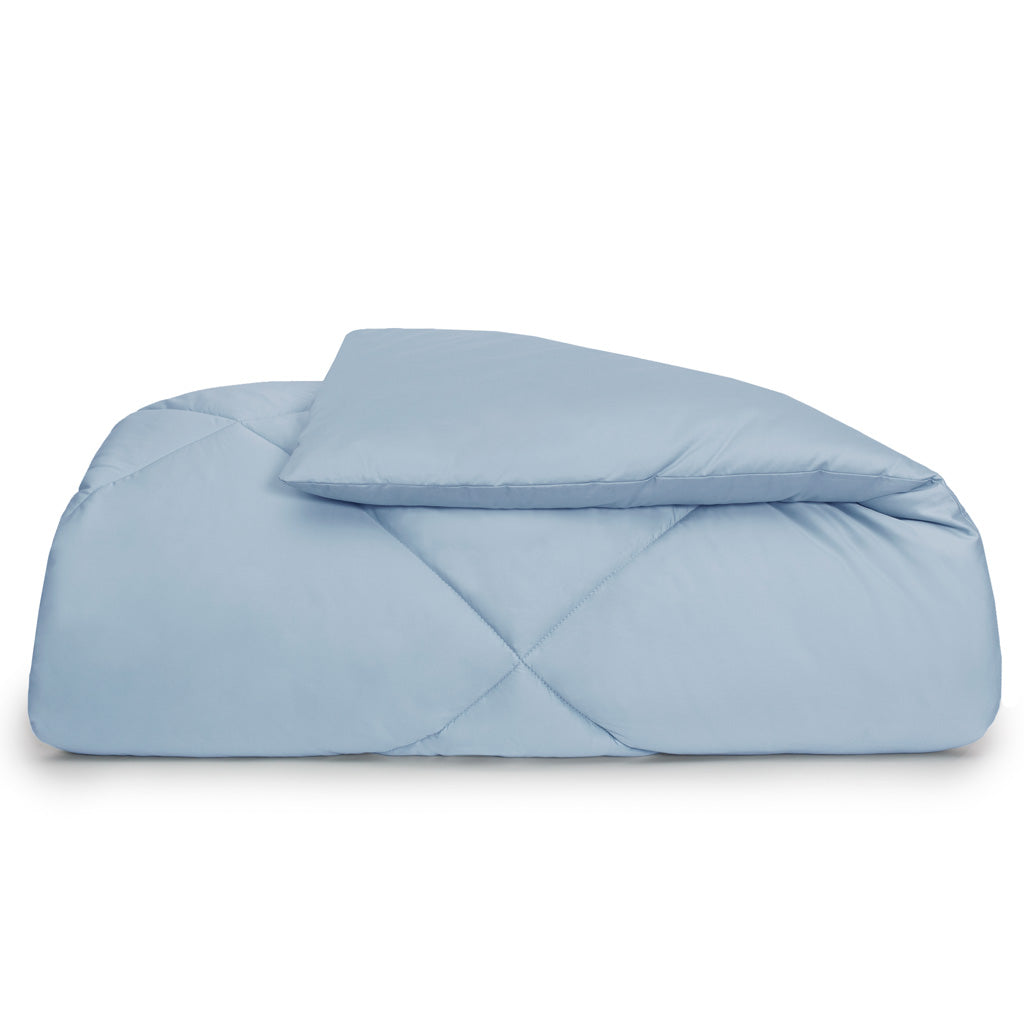 Color your cloud 9 with our new solid comforter sets. This luxurious solid blue comforter provides superior comfort with a down-like warmth and feel. Its silky soft shell is made from a naturally-breathable 400-thread count extra-long staple cotton in a gorgeous shade of french blue. The sewn through box-stitch construction allows for durability and comfort while keeping the fill and warmth evenly distributed for a blissful night‚¬„¢s sleep. Our French Blue Comforter pairs beautifully with our luxury sheets and chic throw pillows.