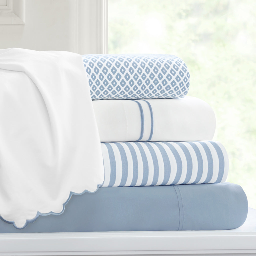 Our French Blue Diamonds sheets are sold as a set with or without the top sheet. Sheets can also be purchased individually.