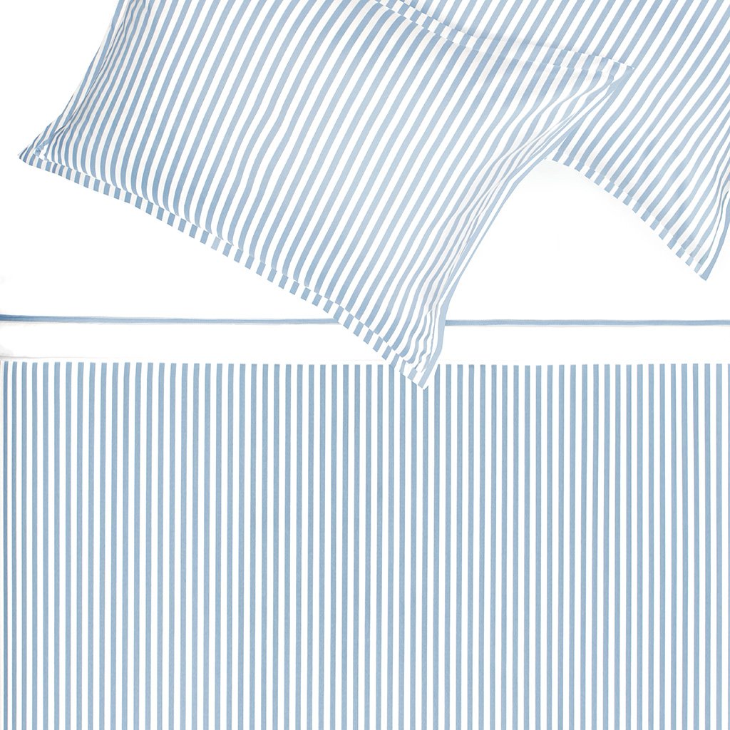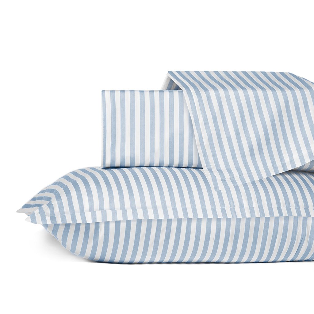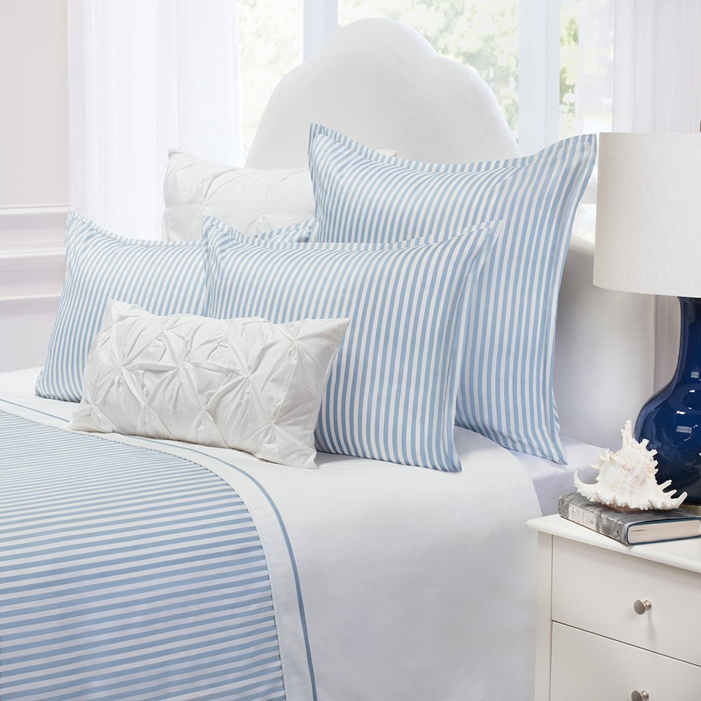 The Larkin blue striped bedding is available in both our Classic style and our signature Nova style.