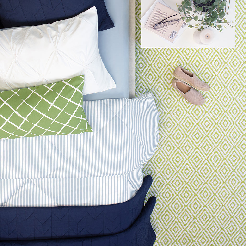 Color your cloud 9 with our fresh take on classic stripes. Our French Blue Larkin comforter, complete with bold stripes and the chicest French blue hue, adds playful sophistication to any space. It's also made from 100% long-staple cotton and woven in a luxurious 300-thread-count, so it looks chic and feels oh-so-soft. Our French blue striped comforter pairs beautifully with our luxury sheets and chic throw pillows.