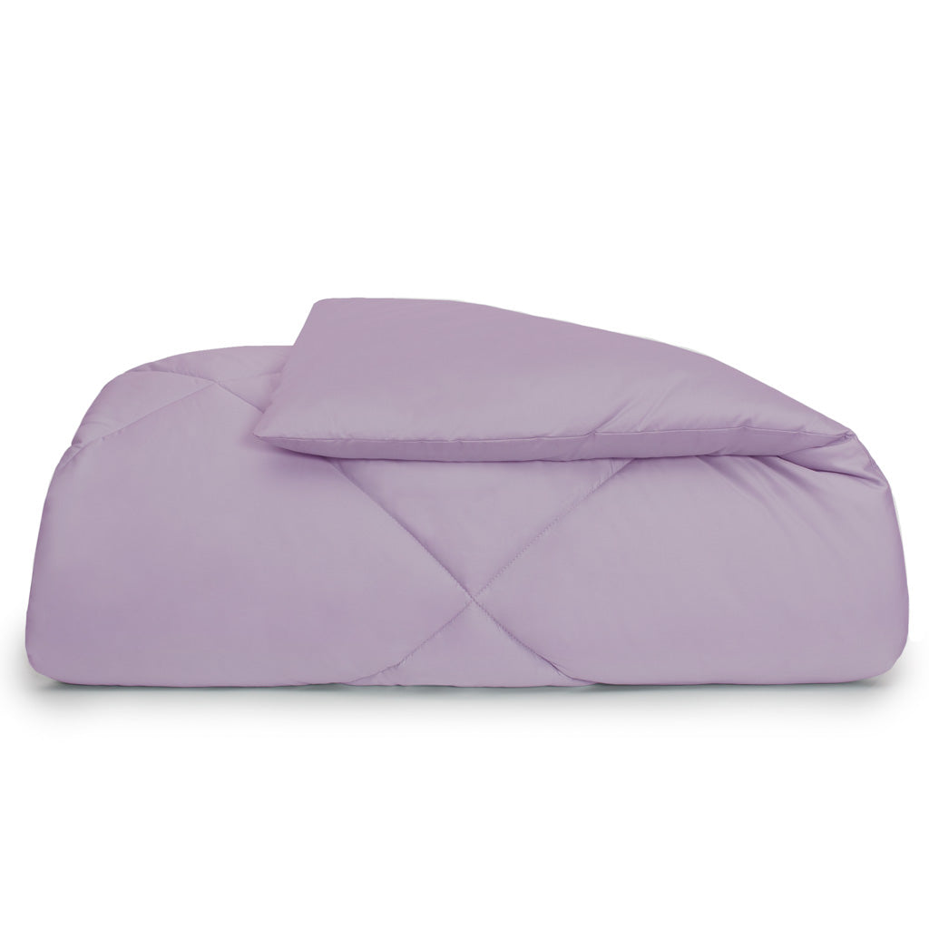 Color your cloud 9 with our new solid comforter sets. This luxurious solid lilac comforter provides superior comfort with a down-like warmth and feel. Its silky soft shell is made from a naturally-breathable 400-thread count extra-long staple cotton in a gorgeous shade of lilac purple. The sewn through box-stitch construction allows for durability and comfort while keeping the fill and warmth evenly distributed for a blissful night‚¬„¢s sleep. Our Lilac Comforter pairs beautifully with our luxury sheets and chic throw pillows.