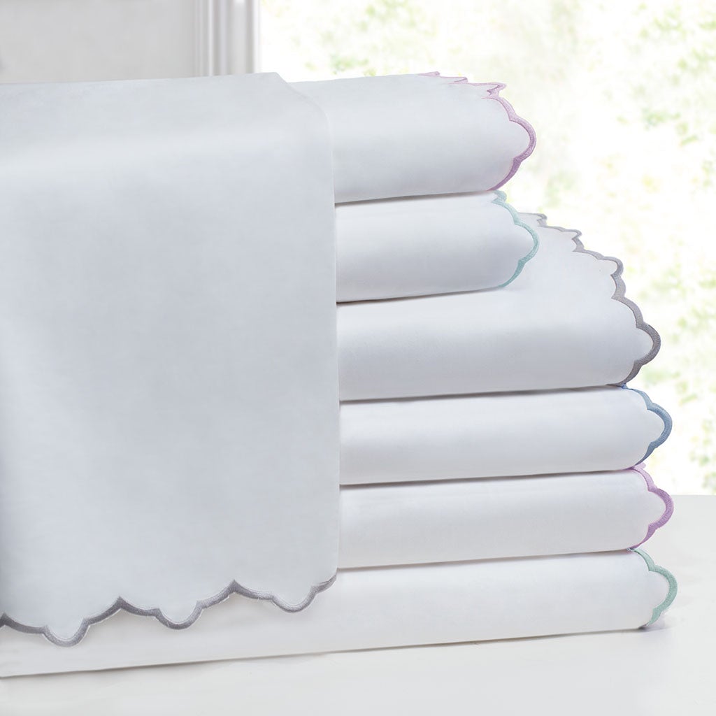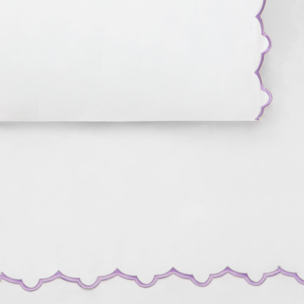 Lilac Purple Scalloped Embroidered Flat Sheet