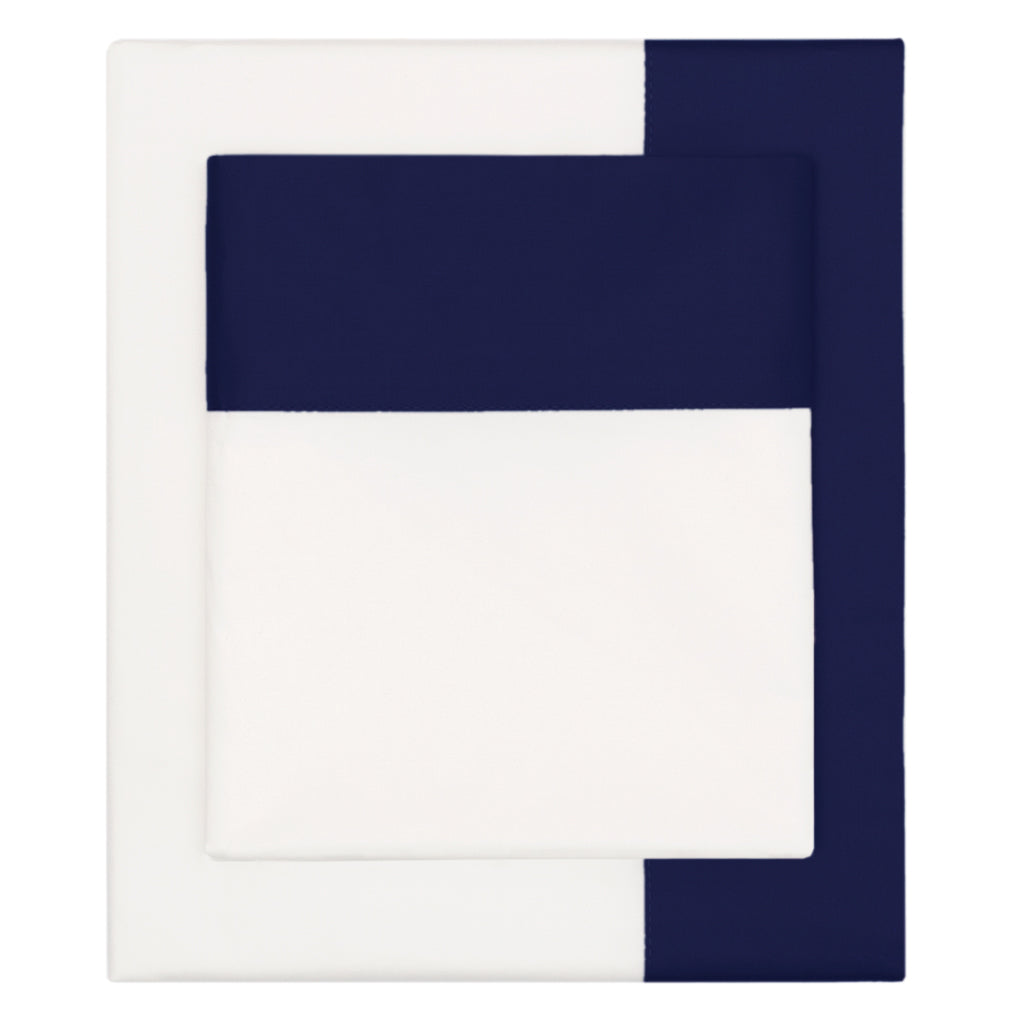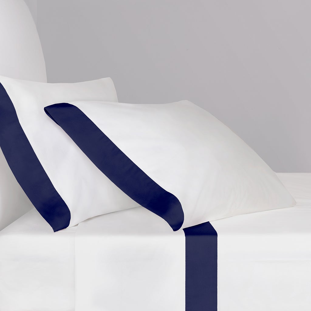 Modern and elegant, our border sateen Navy Blue sheets are the ultimate source of luxury. With a beautiful three inch Navy Blue border, our white and Navy Blue sheets are made from 100% extra-long staple cotton and woven in our much-loved 400 thread count cotton sateen weave.