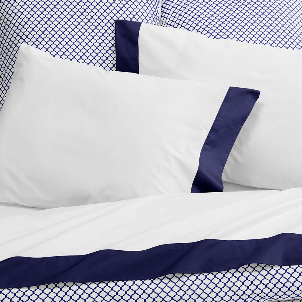 Navy Blue Border Sheet Set (Fitted, Flat, & Pillow Cases)