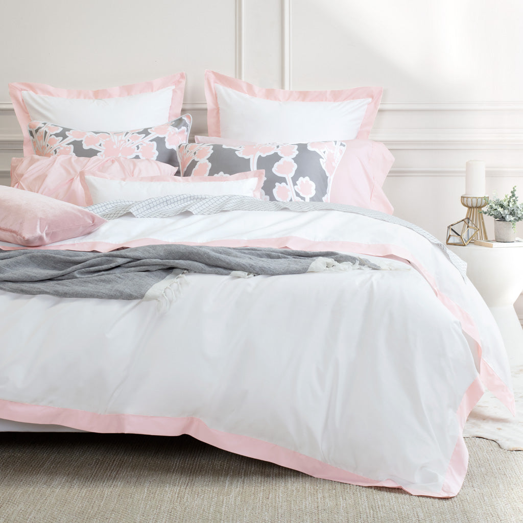 The luxury is in the details, especially when inspired by the classic pink bedding found in the finest luxury hotels around the world. Woven from luxurious 400-thread count, single ply, 100% cotton with tailored pink borders, this irresistibly soft and beautiful pink and white bedding lends elegance to any room.