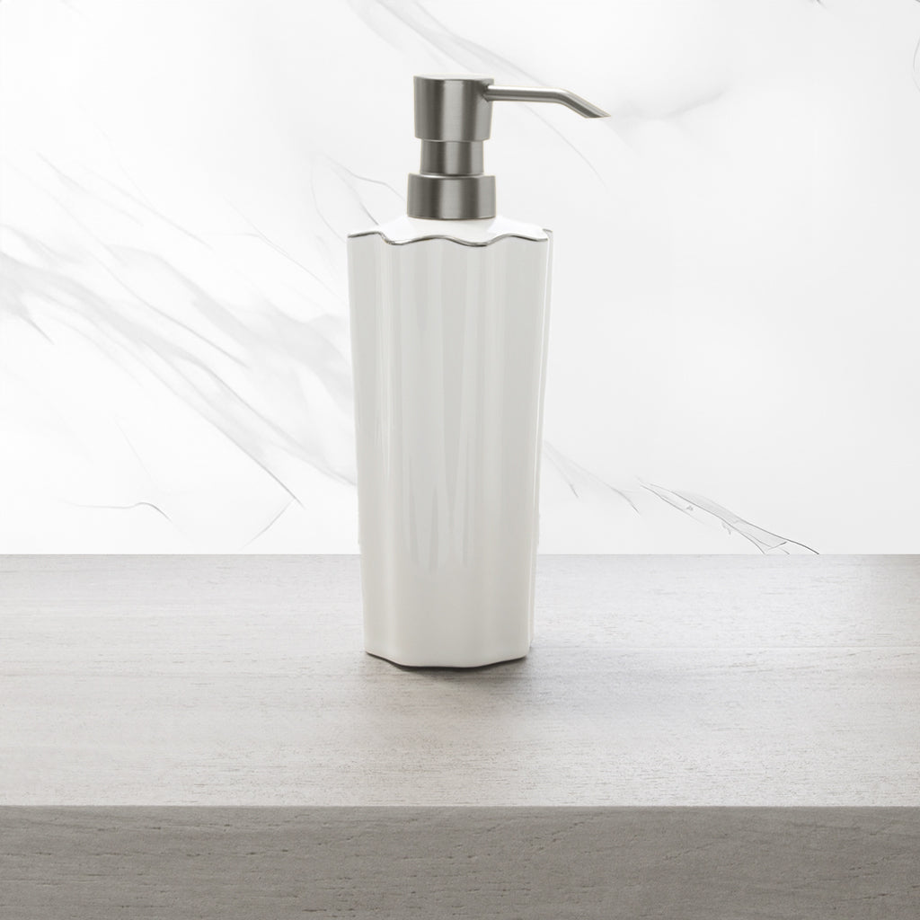 Silver Scalloped Porcelain Bath Accessories, Soap/Lotion Pump