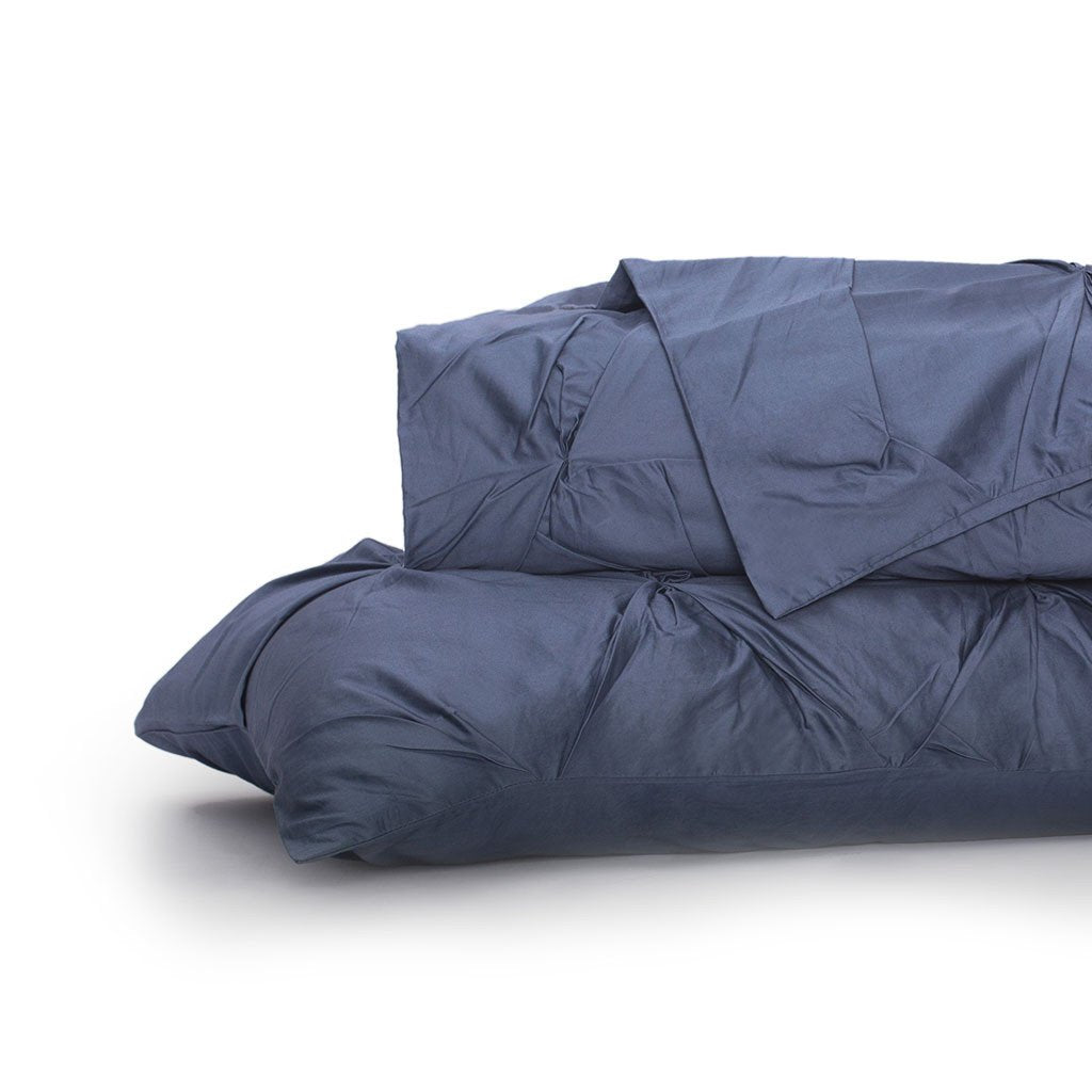 Sleep on a cloud every night! Our Valencia Slate Blue duvet cover, woven from the finest 100% extra-long staple cotton and in a silky-smooth 400 thread-count, features the loveliest pintuck detailing and the sweetest slate blue hue. Our Valencia dark blue bedding pairs beautifully with our luxury sheets and chic throw pillows.
