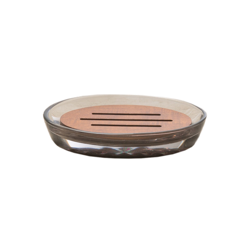 Acacia Wood and Glass Bath Accessories, Soap Dish