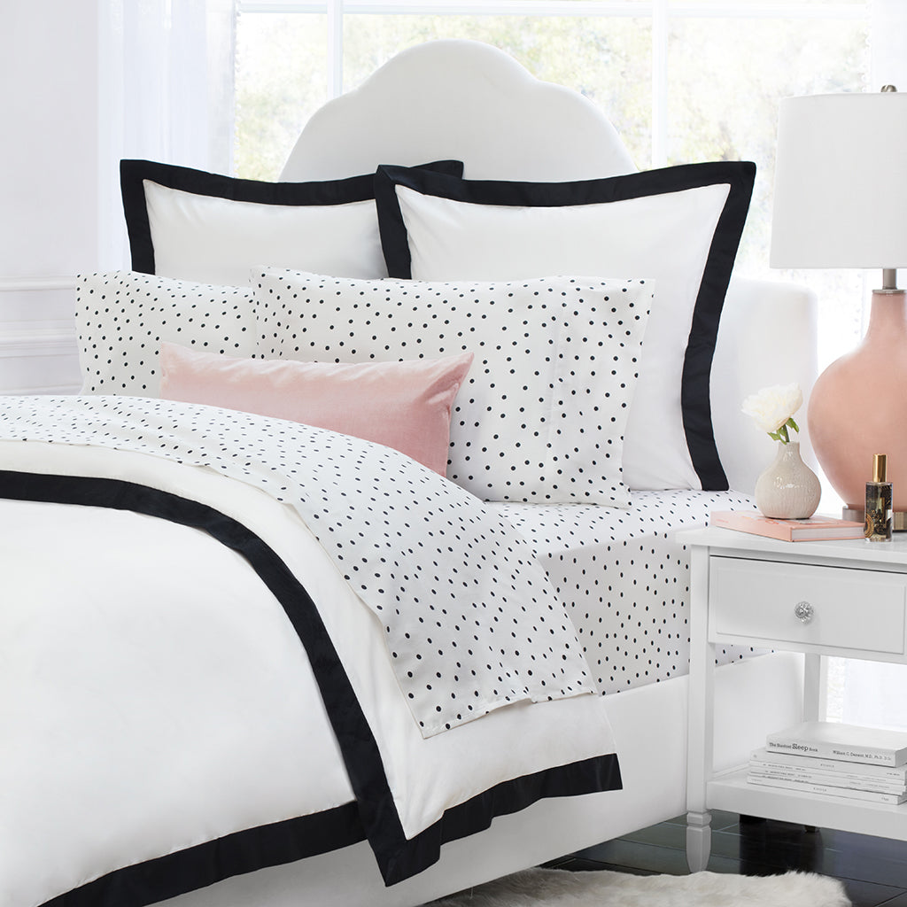 - The Black and White Polka Dots patterned sheets are sold as a set with or without the top sheet. Sheets can also be purchased individually.