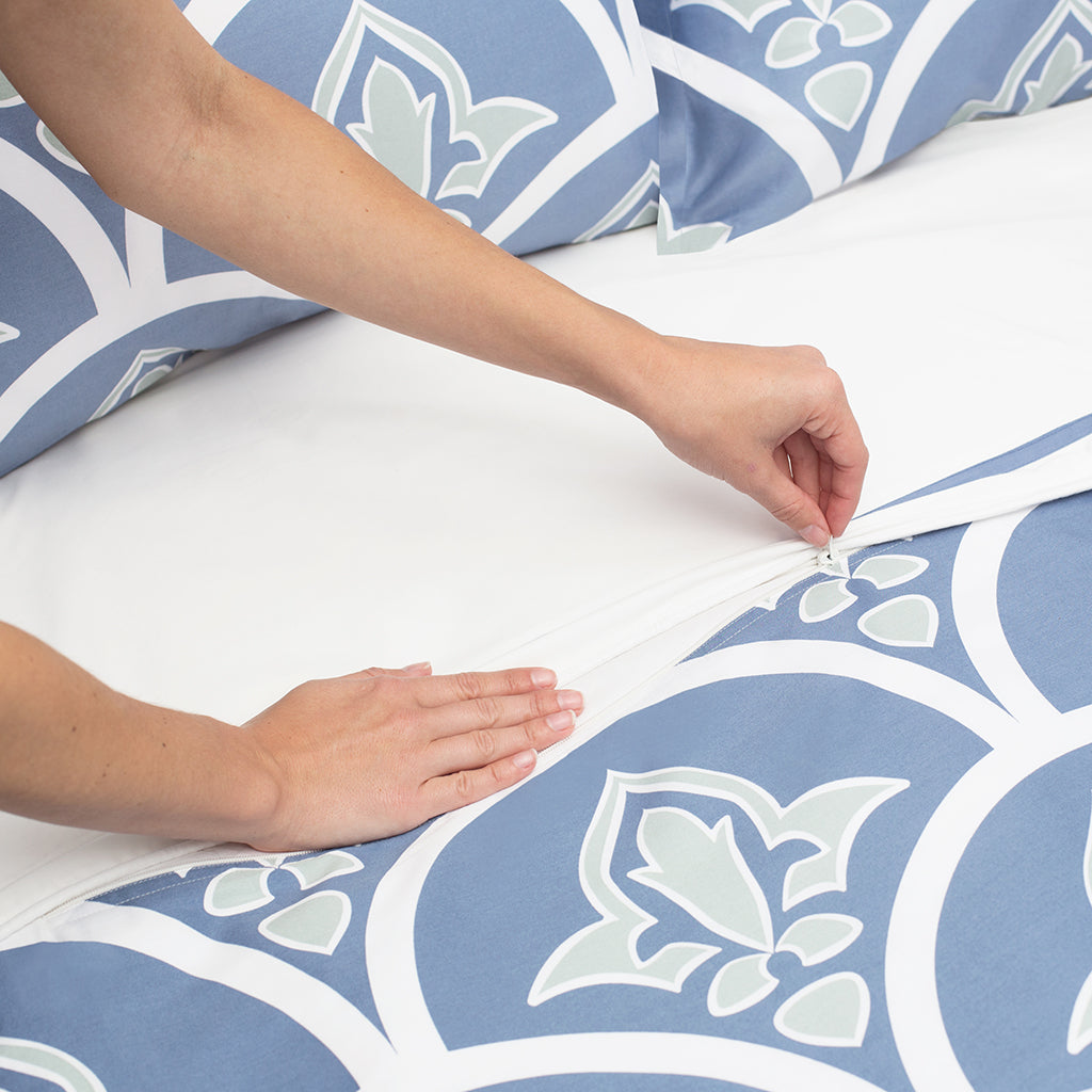 - Hidden zipper enclosure at bottom of duvet cover.
