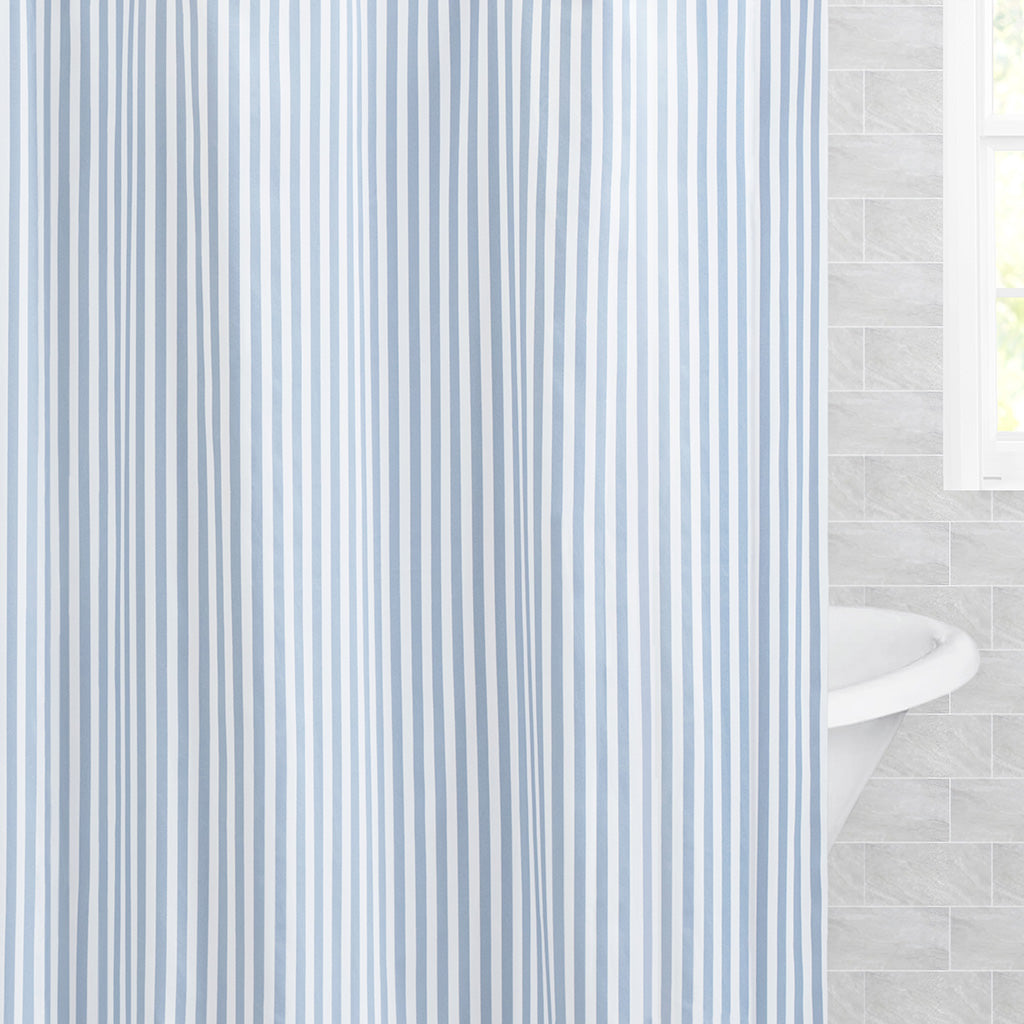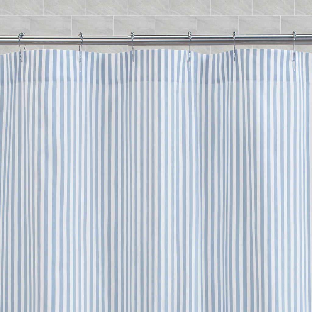 Make a beautiful statement in your bath with our printed shower curtains. With a preppy striped print, this french blue and white printed shower curtain will turn your bath into a coastal oasis.