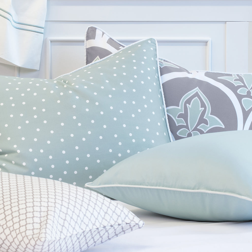 In a timeless, whimsical pattern, the Clouds Throw Pillow in grey is the perfect finishing touch to your bed. It pairs perfectly with the Page Grey Bedding Set and Grey Clouds Sheet Set and layers beautifully with the Linden Light Blue or Valencia Slate Blue pintuck bedding sets.