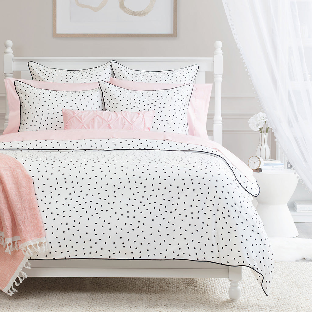 Make a statement with our fresh take on classic polka dots. Our Harper polka dot bedding, complete with whimsical black dots, adds playful sophistication to any space. It's also made from 100% long-staple cotton and woven in a luxurious 300-thread-count, so it looks chic and feels oh-so-soft. Our Harper Black and White bedding pairs beautifully with our luxury sheets and chic throw pillows.