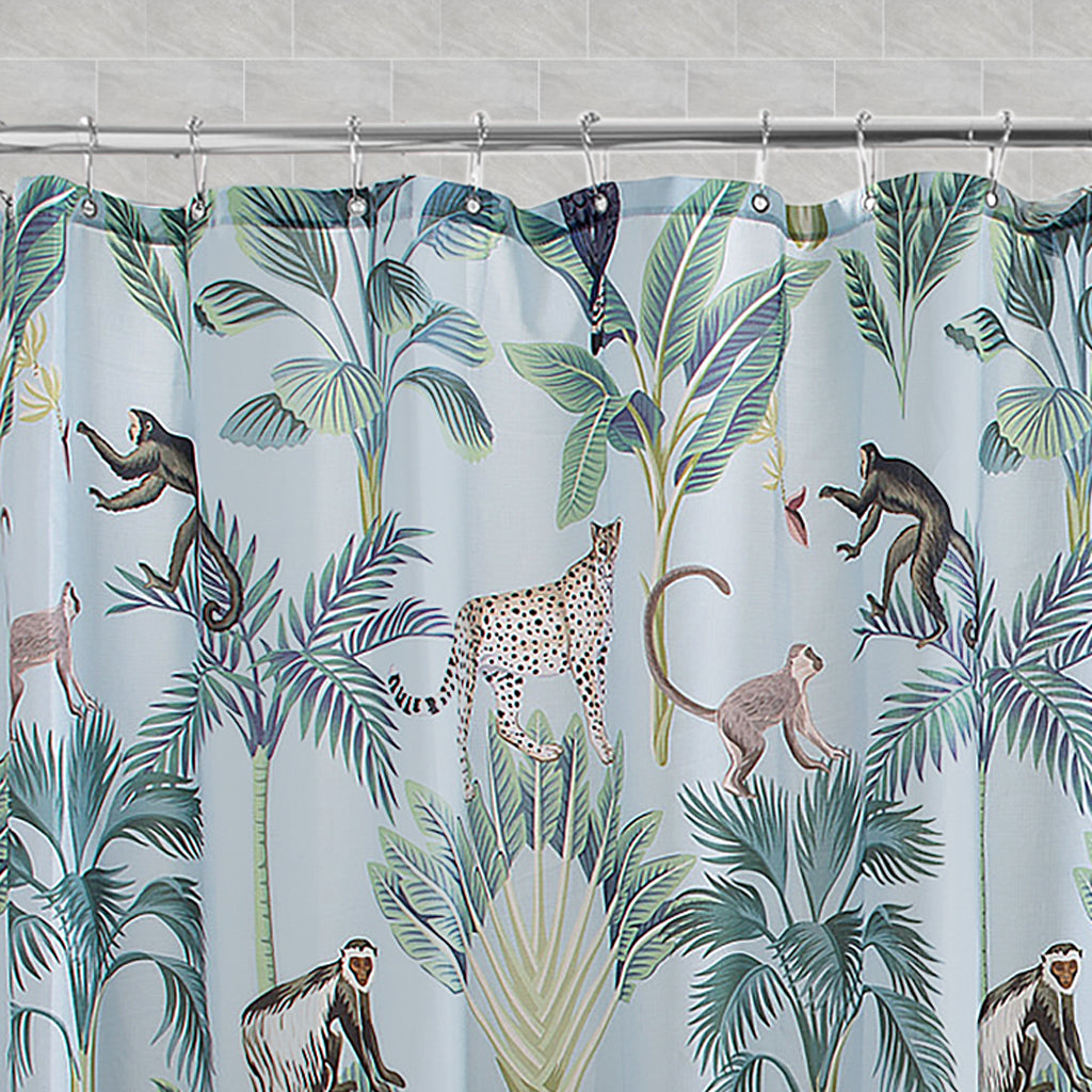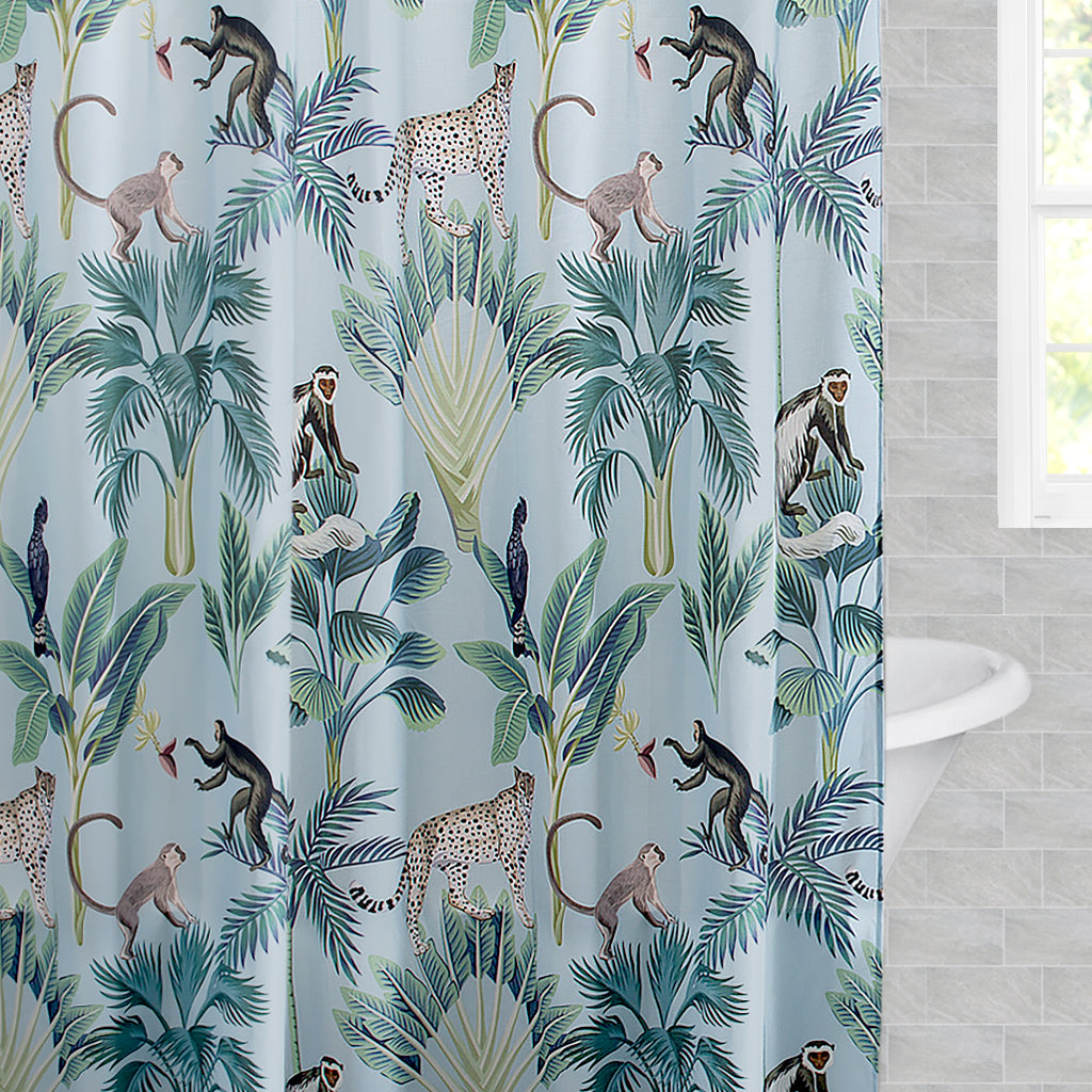 Make a stunning statement in your bath with our beautifully printed shower curtains. With a statement jungle print, this colorful printed shower curtain will instantly add an elegant vibe to your bathroom.